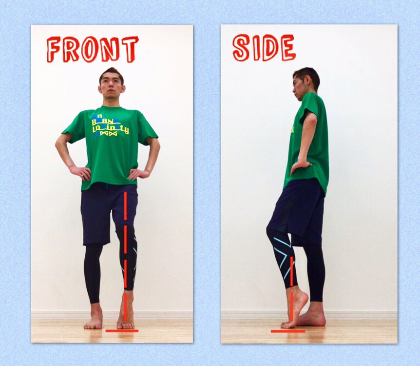 ●足首が外側にも内側にも倒れる事なく、足の指先が横一直線に並んでいる