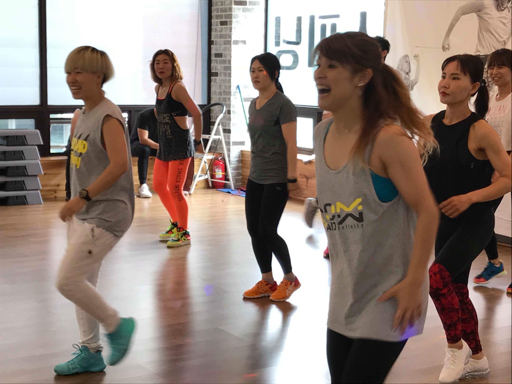 コンベンション2日目は、エアロビクス・ステップのレッスンが目白押し👀