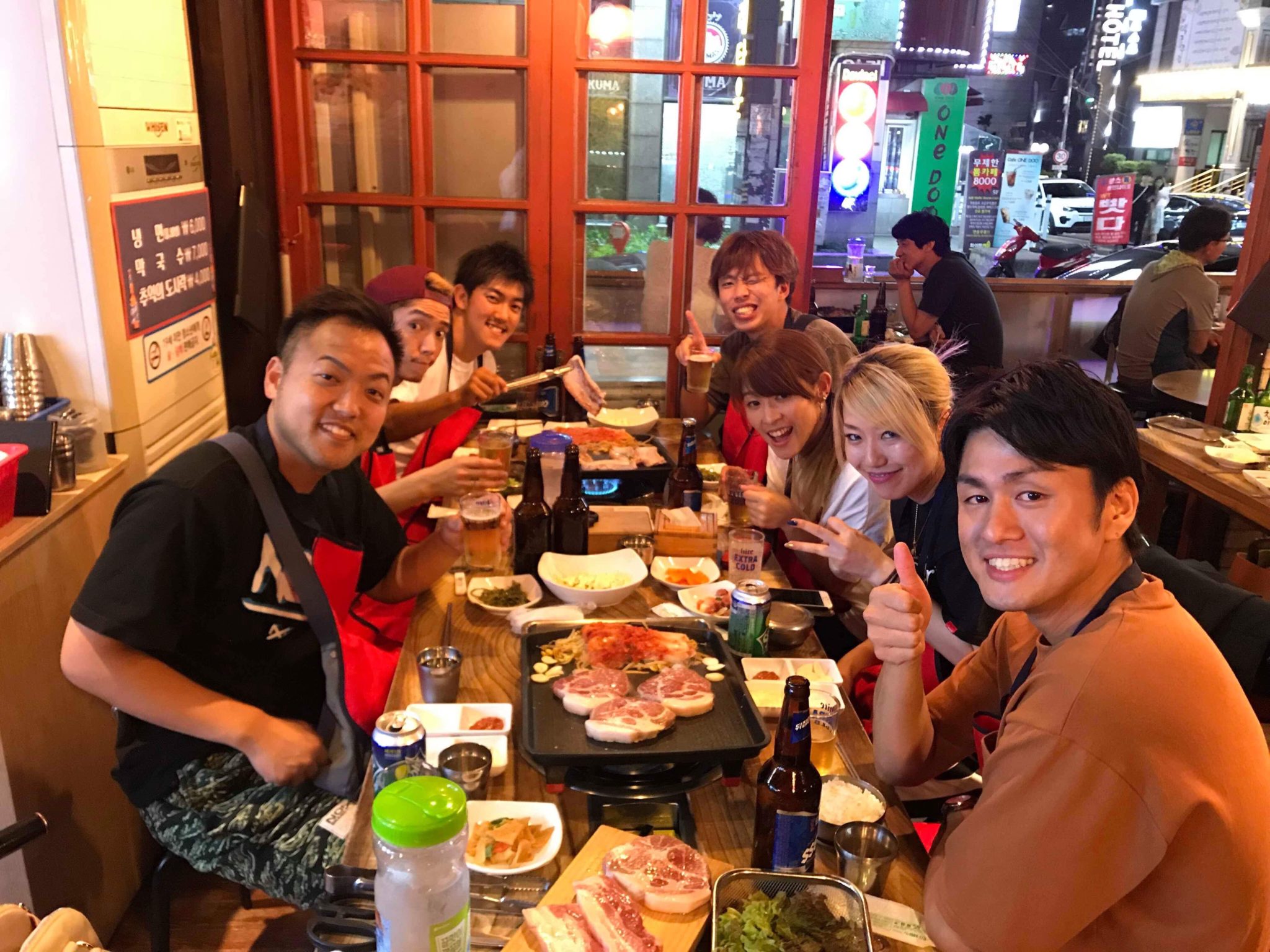 コンベンションの全日程が終わってから、日本人インストラクター総出で、ホテル近くのサムギョプサルのお店へ(*≧∀≦*)🥓