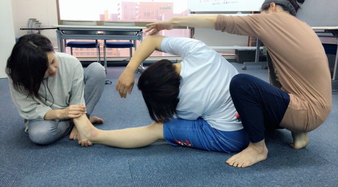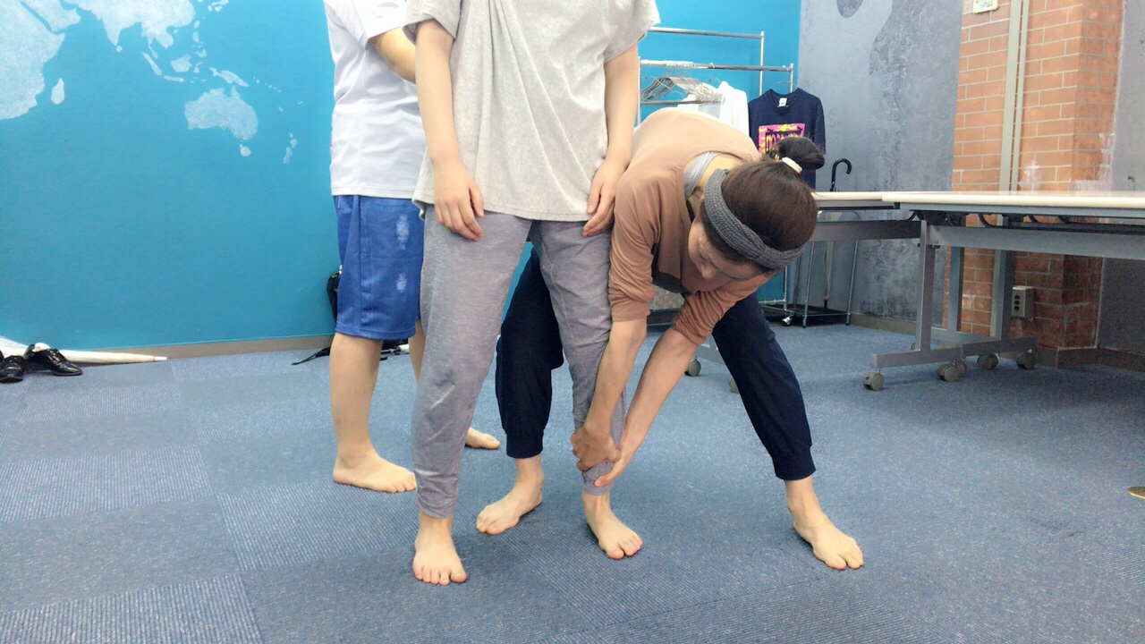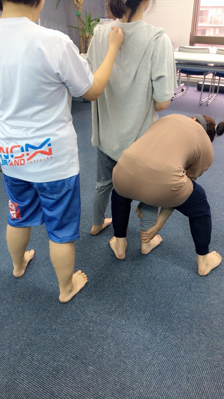 最後には、3人組でお互いに補助を付け合いながら、「側屈」が深まる検証をしましたが、、、