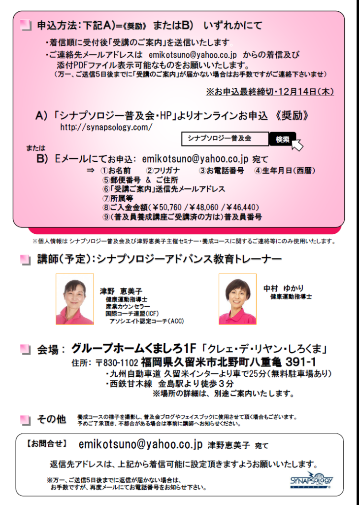 ★シナプソロジーインストラクター養成コース in 久留米(福岡)