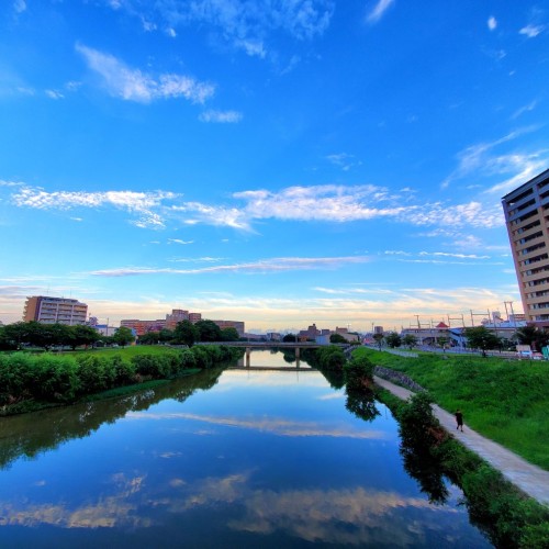いつもの河川のジョグコースはこの通り、まだ水没しています。
