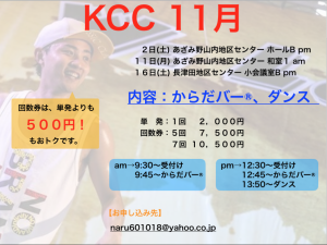 先日11月のKCC日程をアップいたしましたが、訂正箇所がございました!訂正後の詳細をアップさせていただきます 🙂