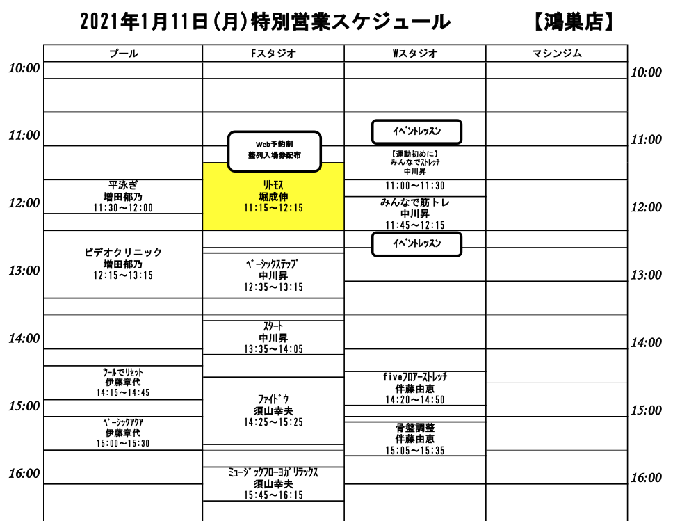 明日1月11日(月)祝日のレッスンスケジュールのご案内です😃
