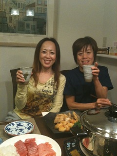 大木真理さんも合流して岡部家のお二人と水野、まりさんの4名で食事