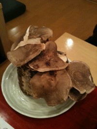 先に1つ食べられた岩がき、木についているしいたけをカットして炙る、、、うまい!