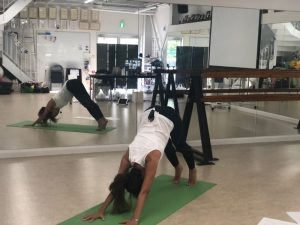 アクアインストラクターの身体作りにヨガを使用して、デッキでの呼吸、動きをより良くするための