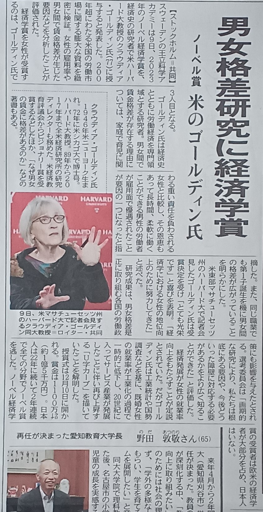 2023年のノーベル経済学賞を、
