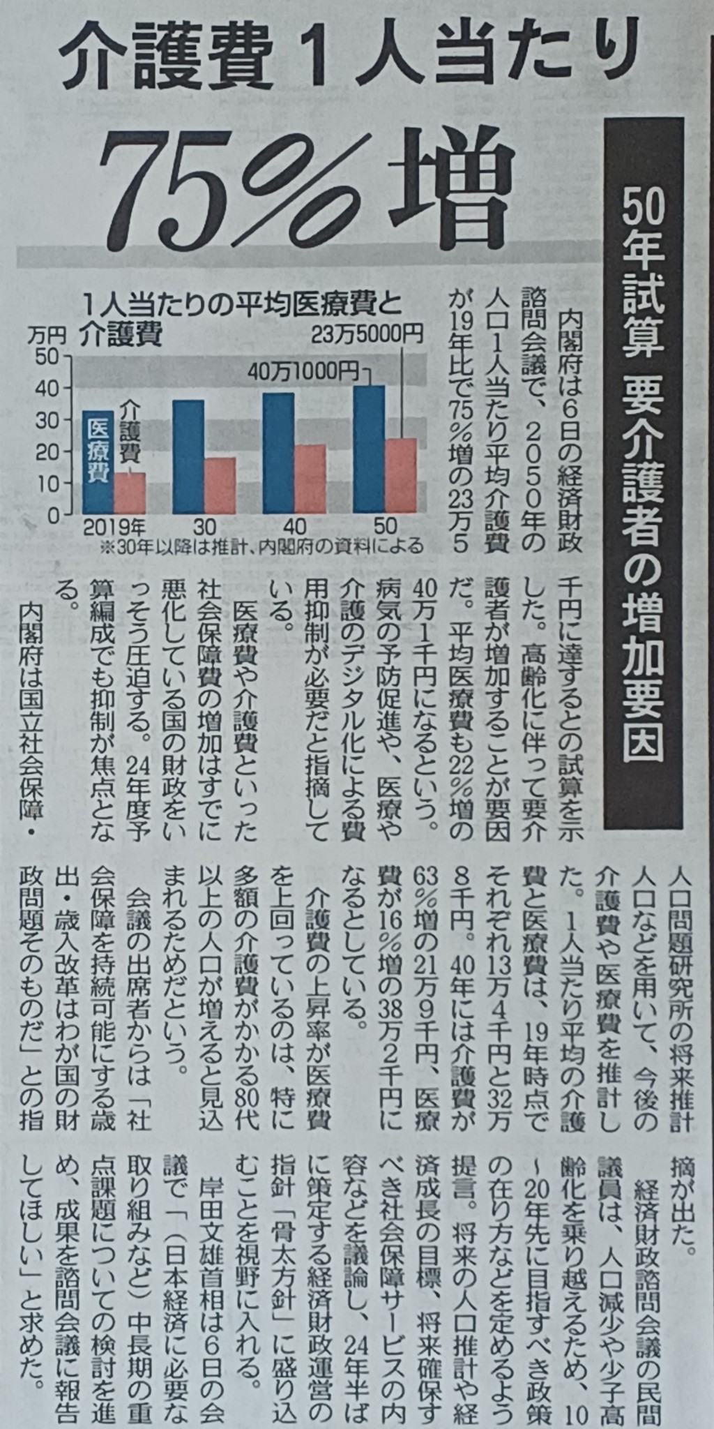 40年には介護費が63%増の21万9000円、