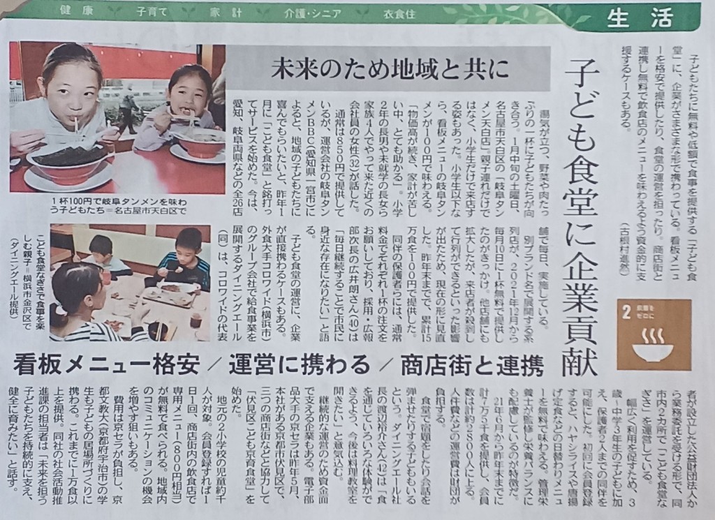 子ども食堂に企業貢献