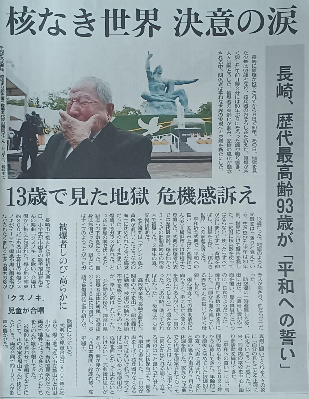 長崎に原爆が投下されてから9日で80年。