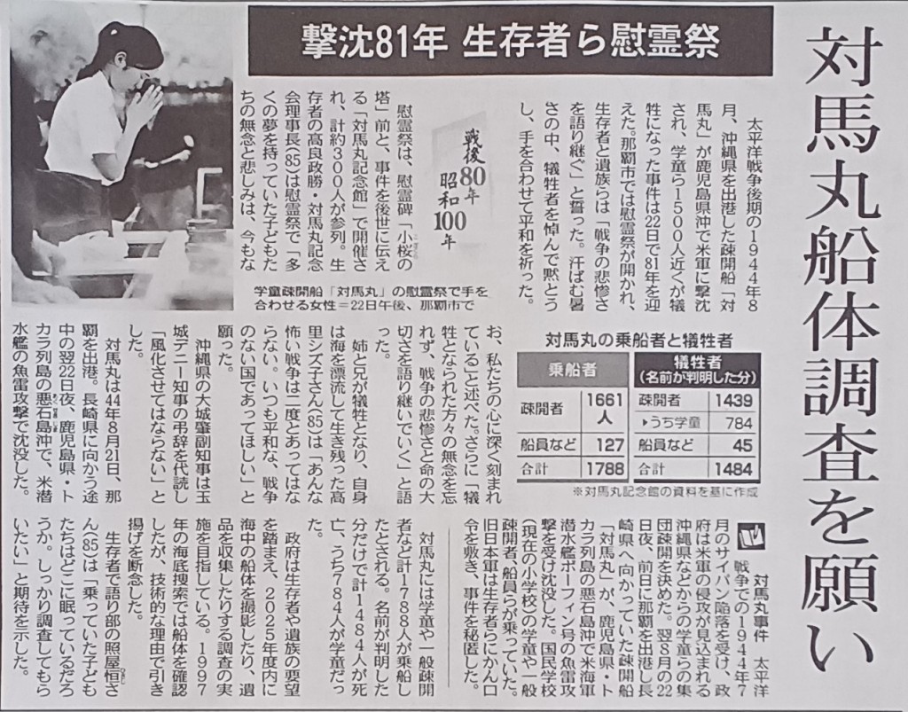疎開船「対馬丸」が、