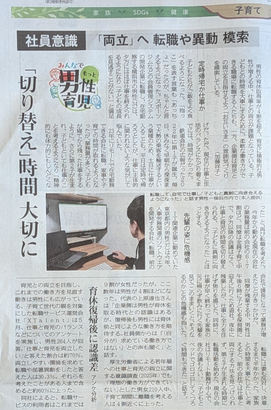 勤務先を選んだと想います。家族との時間のために