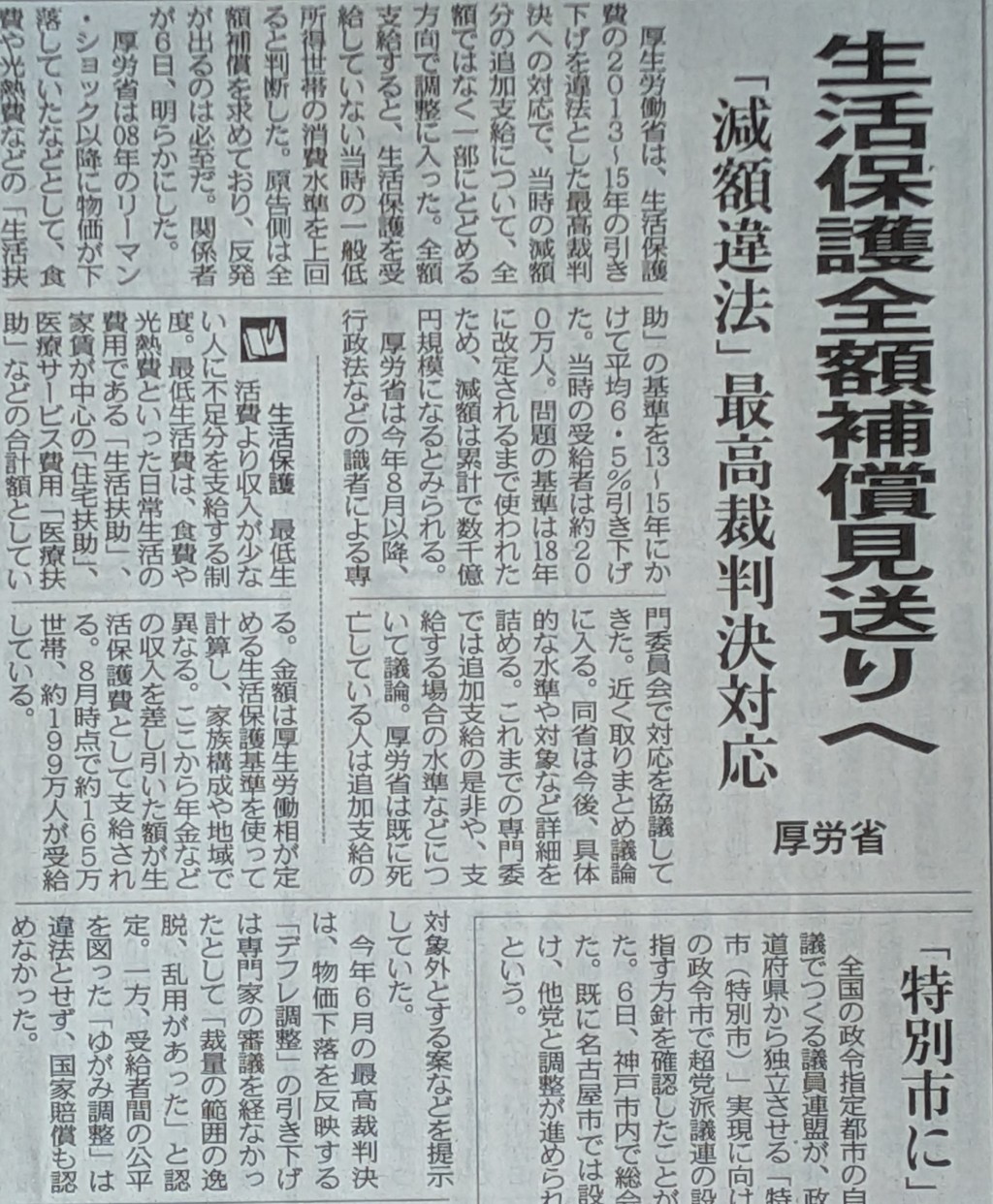 厚生労働省は、生活保護費の