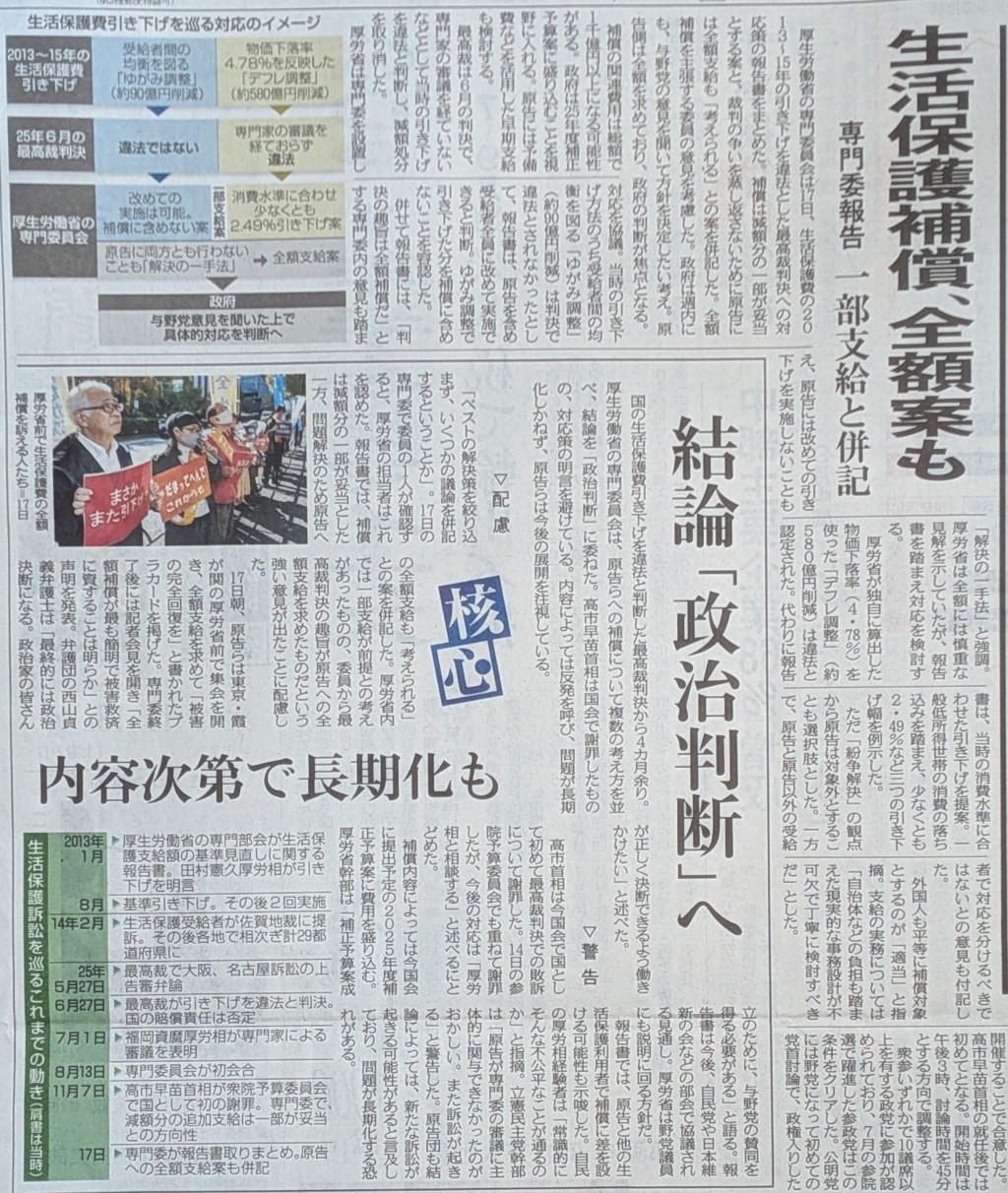 国の生活保護費引き下げを違法と判断した