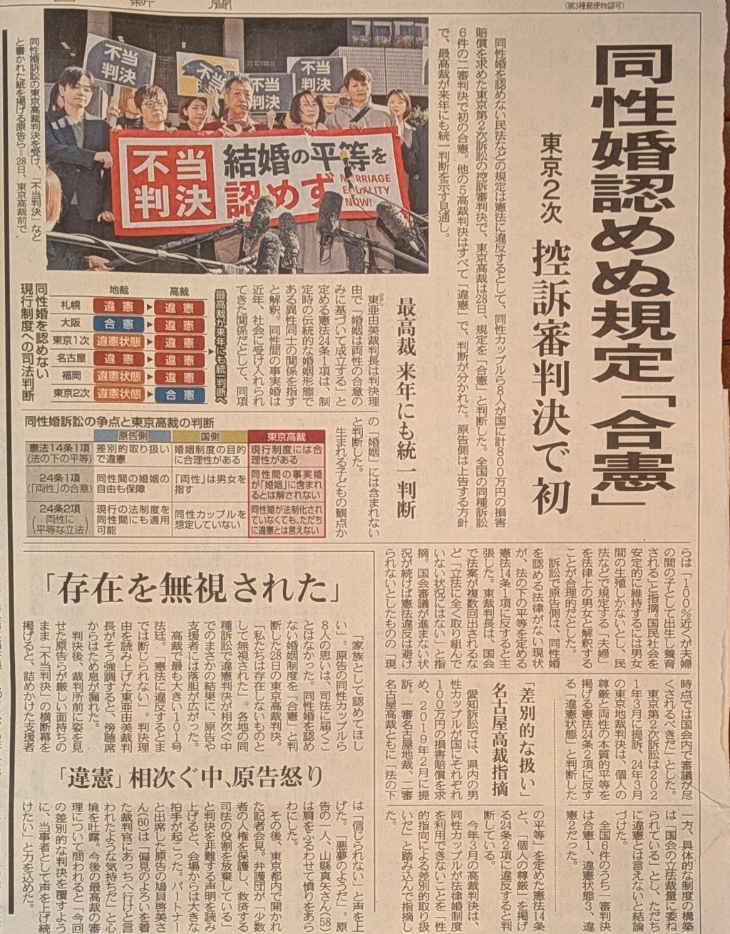 他の5高裁判決は全て「違憲」で、