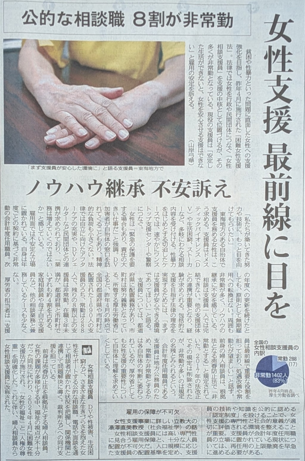 8割が非常勤の女性相談支援員
