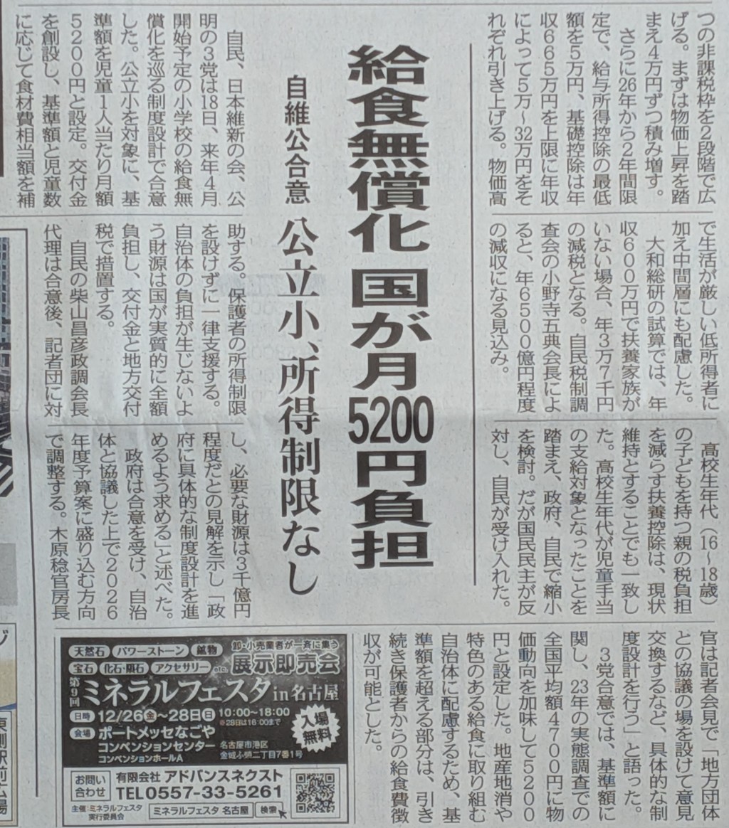 12月19日(金)の中日新聞の記事です。