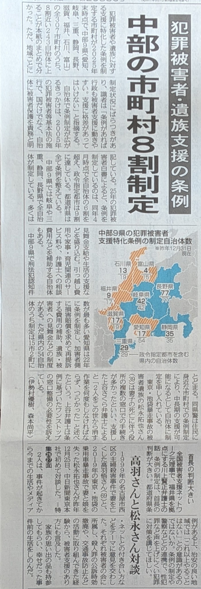 特化した条例を制定する市町村が中部9県の全307市町村のうち、