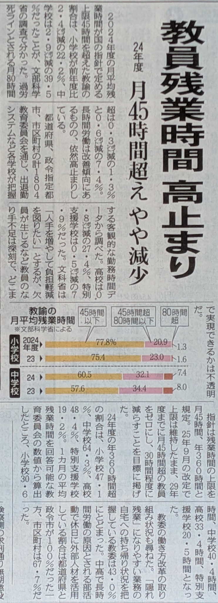 国の指針で定める上限45時間を超えた