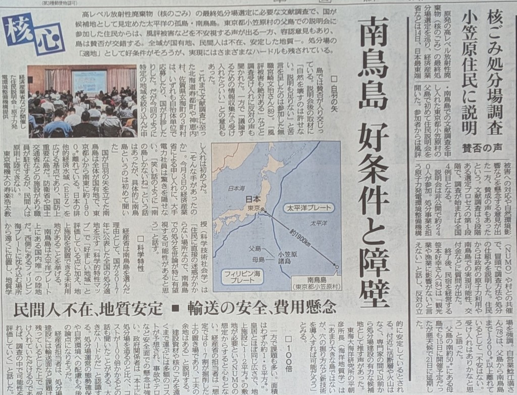 南鳥島の有用性について学びました。「島は賛否が交錯する」