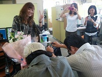 未分類 今日で 2012年9月28日 安田 智子 武藤美佳さんが退職されます 昼休み いつも笑いがたえませんでした 社長からの トクセイジュースの差し入れを飲み そして 社長&専務からの告白 さぁ~ どっちをとる? 最後 スタッフ皆で写真を。 この後 武藤さん送別会開催です 失礼 間違ってました 『武藤美佳26歳送別会開催』です これで最後ではないので 今後もプライベートでのお付き合いをしますよ 覚悟をしてくださいね むとーさん そして スタッフ皆様へ 今日は遅刻厳禁ですょ