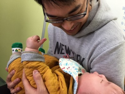 皆にだっこされても泣かないけいすけ君です