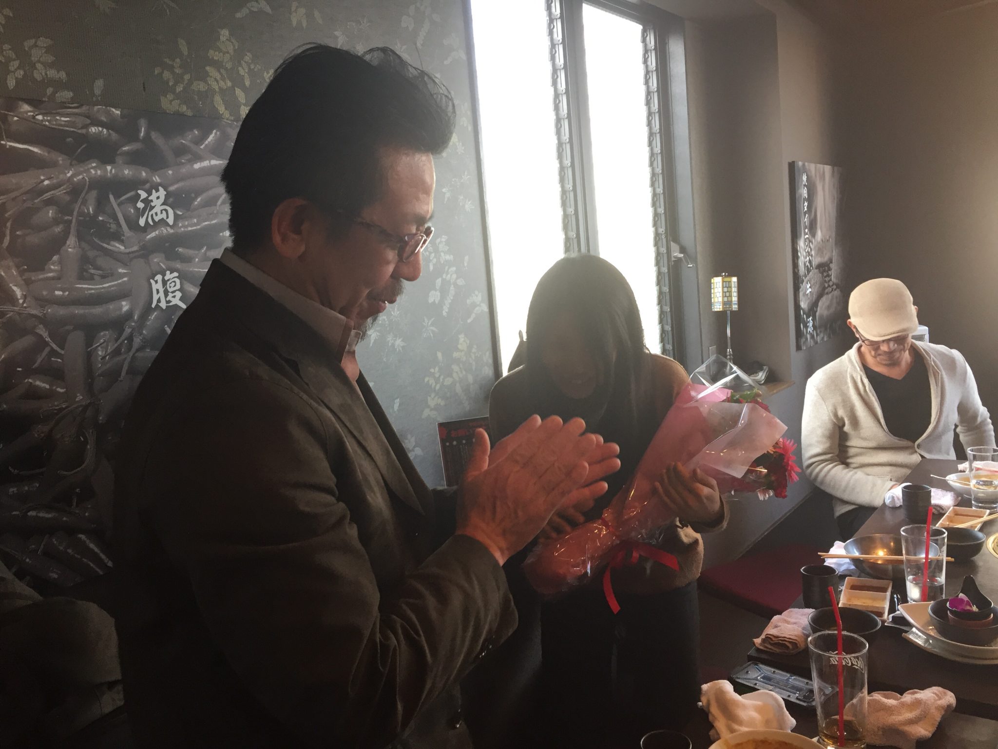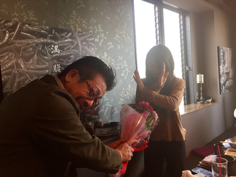 社長からの花束を断る光景