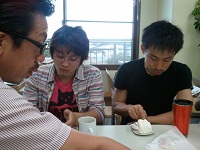 未分類 少し早いですが。 2012年8月31日 安田 智子 今日のお昼、社長から頂いた『スムージー』 飲みやすくて美味しかったです! そして、ケーキの日でした 誰の誕生日なんだろう?と思っていたら私でした 誕生日は9月3日ですが、前もってお祝いしてくれました 社長~うつってます 私は桃のケーキを選びました 悩むスタッフ 今回は、指さしでどのケーキを食べるか決めて かぶったらジャンケン。 その後、真剣にケーキに立ち向かう そして、私のケーキを狙う マメ部長もお祝いしてくれて ごちそうさまでした