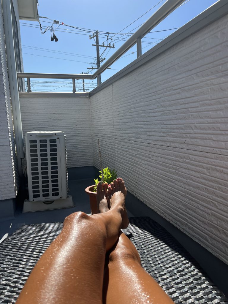 朝から日焼け