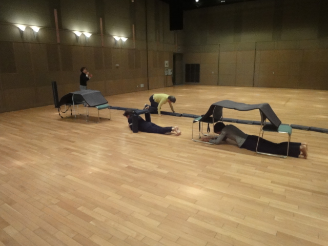 椅子の下をくぐったり登ったり