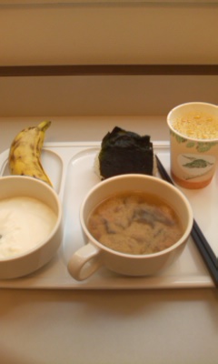 今朝は、おにぎり・お味噌汁・バナナヨーグルトにオレンジジュースを飲み、爽やかにホテルを出発 (^_^)