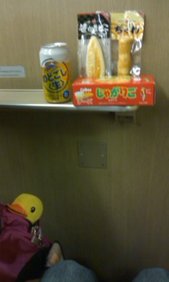 私は、缶ビールにチーズちくわ、大好きなじゃがりこ ( チーズ味 ) を食べて、ご満悦です ♪ (^3^)
