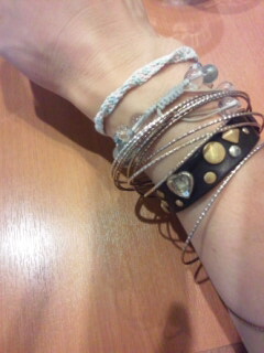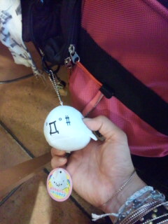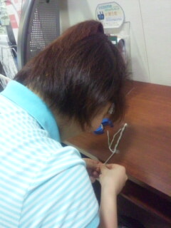 編み編み編み……、ミサンガを作ってきてくれて、最後の仕上げを、メガロス町田の玄関で……★