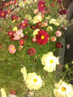 この、薄いピンクと濃いピンクと白のコスモス……可愛いなぁ~ (●^o^●)