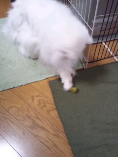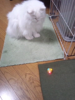 ピカピカ光る… を持ってきて、ぶんちゃんの前に転がしてみました〜。コロン…。