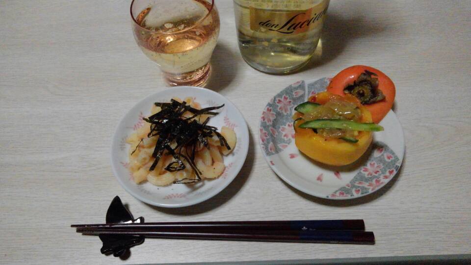 柿の中には中華クラゲ&キュウリ(^3^)