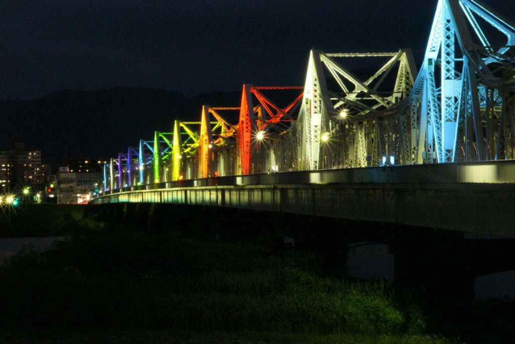長岡の長生橋が綺麗にライトアップされています(^^)