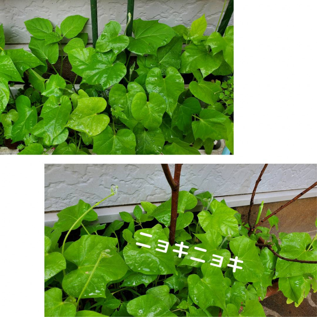 朝顔のツルが伸びてきました~♫ (≧▽≦)/