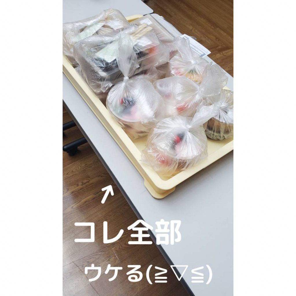 職員さんが岡持ちに入れて、