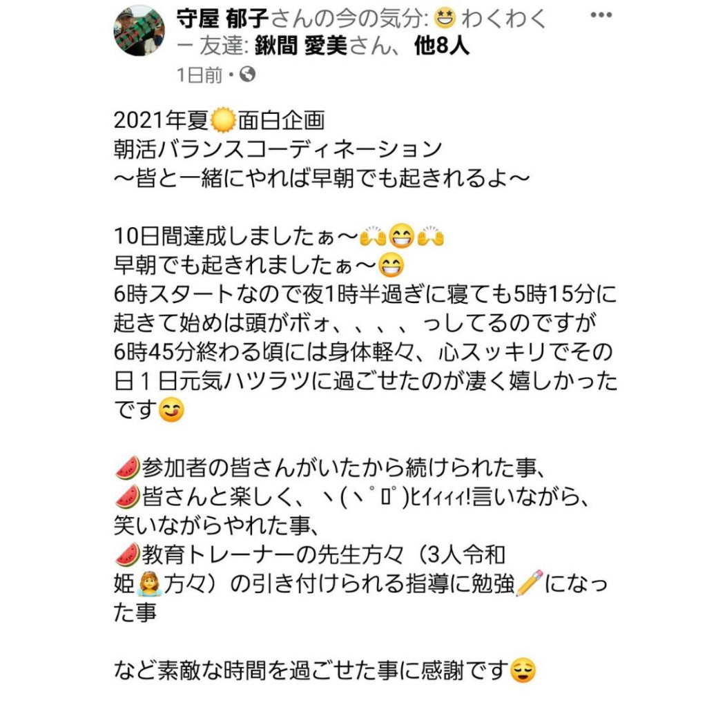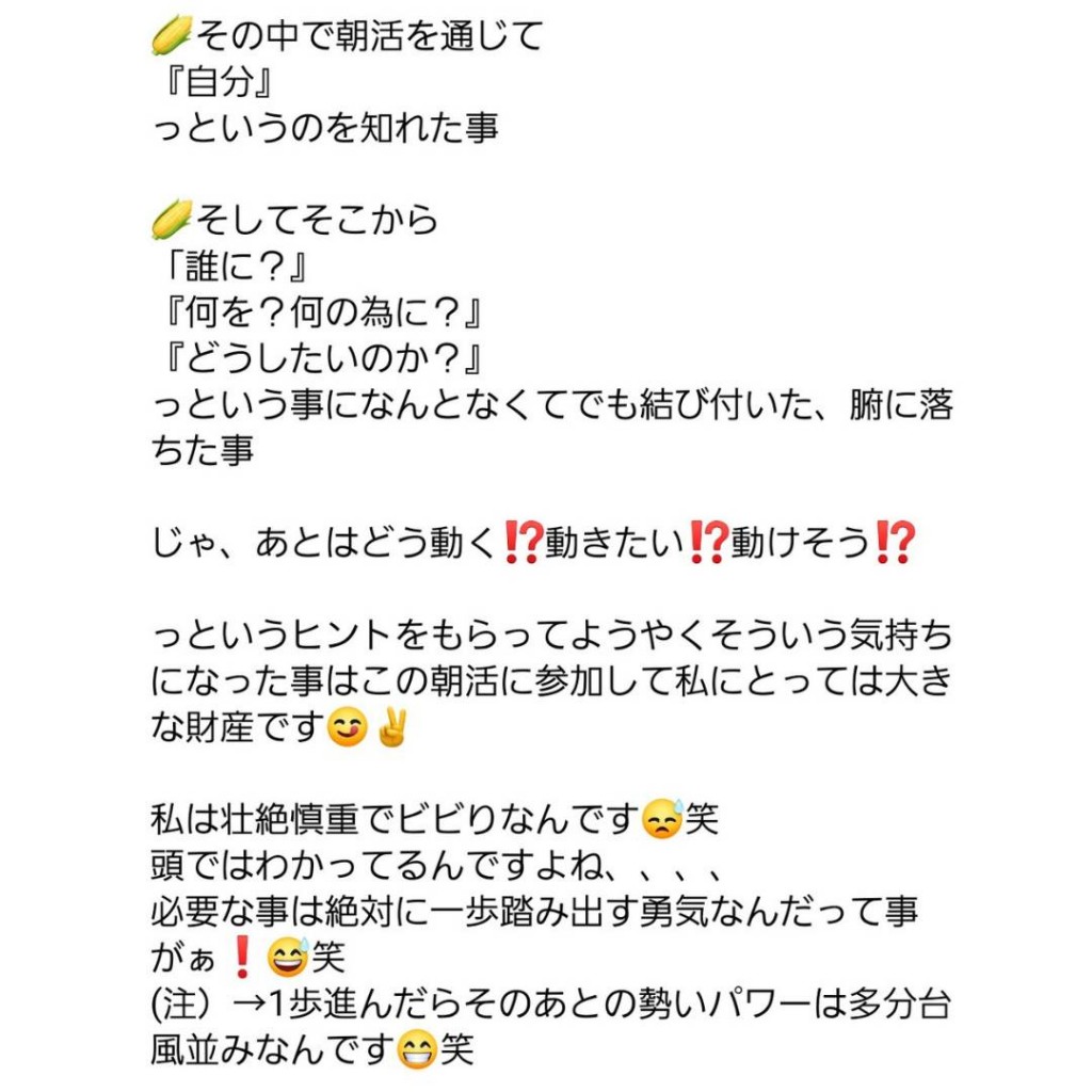 朝活メンバーのいくちゃんの心の炎が燃える投稿🔥