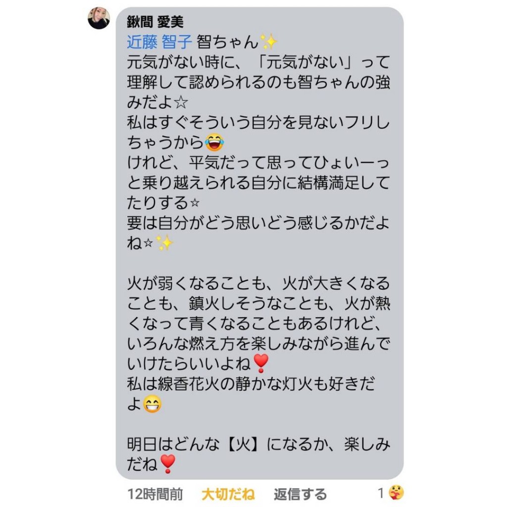 改めて「仲間ってありがたいな」「エネルギーのある人達と一緒に居ると心地よいな」…と感じています💛
