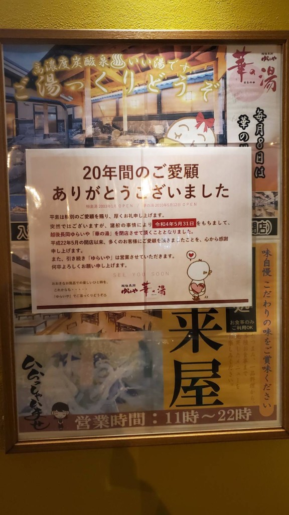 華の湯が昨夜、閉店しちゃった~(´;ω;`)ウッ…