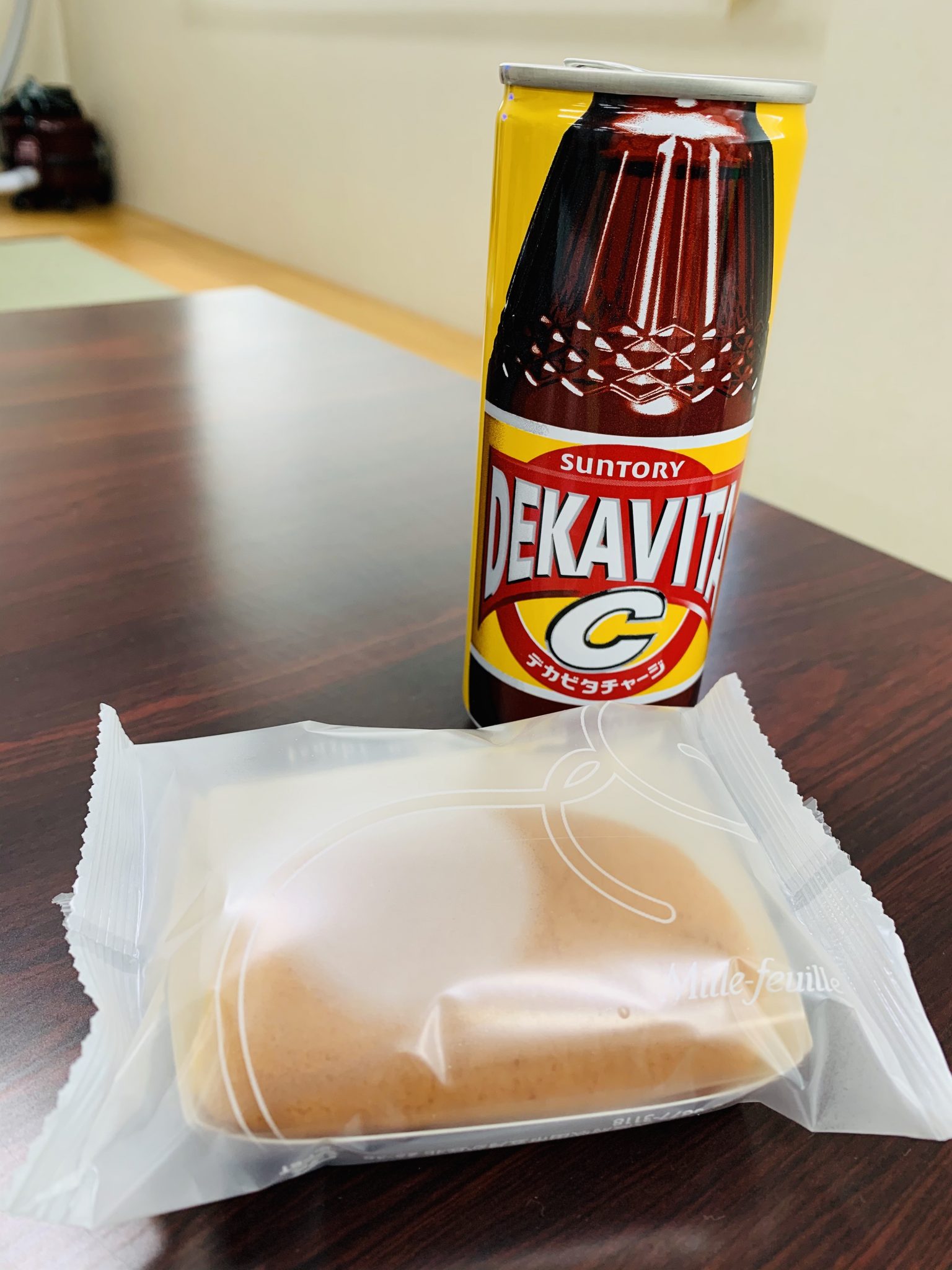 お客さまにいただいたお菓子とデカビタ補給して、午後も頑張りまーす❣️