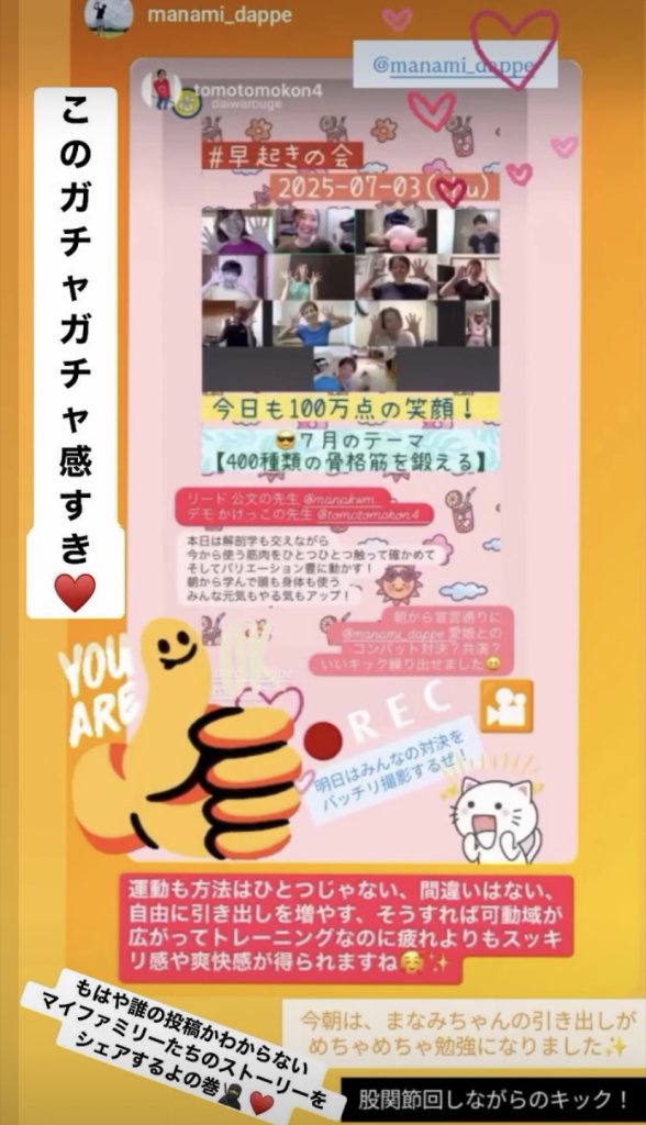 2025.6月26日〜7月4日のあれこれ 2025.07.05 mana SNSストーリーズ 無知と無意識から解放されよ 種をまく ピックアップ記事 レッスン 無知と無意識から解放されよ 2025.07.03レッスン, 宣伝・告知・お知らせ レッスン みのりこどもえんさんへお邪魔してきました 2025.05.20レッスン レッスン 母業を楽しむために自分を大事にする 2025.05.28レッスン からだバー® からだバー®︎ビューティー モニタリングを通して確信したこと 2022.10.28からだバー®, 宣伝・告知・お知らせ, 想い 関連記事一覧 SNSストーリーズ 2024.11月1日〜11月13日のあれこれ 2024.11.13 SNSストーリーズ 2024.6月8日〜15日のあれこれ 2024.06.17 SNSストーリーズ 2025.4月12日~4月25日のあれこれ 2025.04.25 SNSストーリーズ 2025.12月10日〜12月21日のあれこれ 2025.12.21 SNSストーリーズ 2025.1月20日~1月27日のあれこれ 2025.01.28 SNSストーリーズ 2025.6月9日〜6月25日のあれこれ 2025.06.25 SNSストーリーズ 2025.11月1日〜11月10日のあれこれ 2025.11.12 SNSストーリーズ 2025.12月22日〜12月31日のあれこれ 2025.12.31