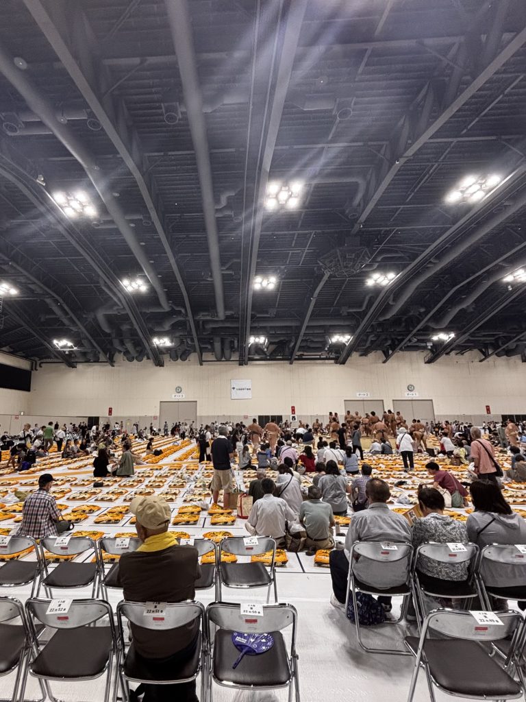 中に入るとフロアに力士も立っており、土俵にもたくさんの力士が🤩