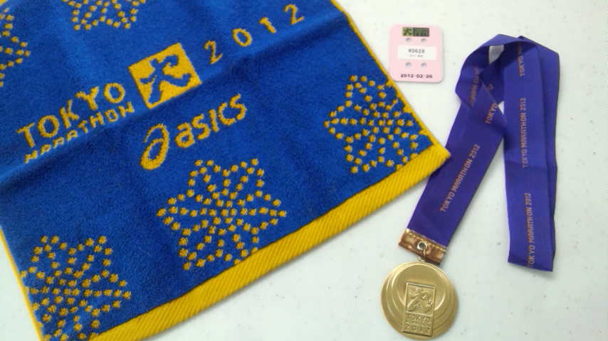 いただきもの 東京マラソンのだよ〜 2012年3月7日 鈴木 光代 東京マラソンに参加したエグナススポーツクラブのチーフにぶちゃん♂からちょっと拝借 記念メダルにタオル、そして四角いピンクのは足につけて走ったそうです ICチップが入っていて通過地点の時間などが自動的にわかるとか… 凄いですね〜 にぶちゃんお疲れ様でした〜m(__)m そして記念タオルありがとー