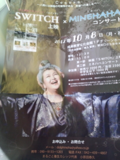 プライベート お出かけ〜ヾ(^ ▽^)ノ 2012年10月8日 鈴木 光代 今日は東久留米にお出かけ 第1回 多摩・まるごと養生ガレッジ 映画「SWITCH」上映&ミネハハコンサートで〜す 主催は最新刊「原爆と原発〜ホピの聖なる預言〜」の著者でもある小原田泰久せんせい 成美教育文化会館到着〜 「生かされていることを知るとき、私たちの遺伝子はオンになる…」なるほど〜なるほど〜 ミネハハさんの歌声も♀_(`O`)♪も素晴らしかった〜 小原田せんせいと記念撮影 帰りは渋谷で焼き肉〜 スンゴイ量 あ〜今日は有意義1日でした〜