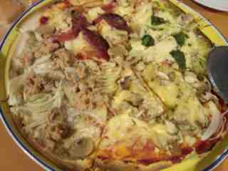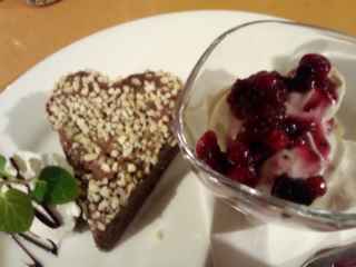 プライベート X'masイブ 2012年12月25日 鈴木 光代 アルバローロ?でX’masメニューのディナーを堪能です う〜豪華 まずは前菜そしてクワドロ…4種類のピザ 魚料理に肉料理 デザートはナンとハート型のチョコレートケーキかわい〜い