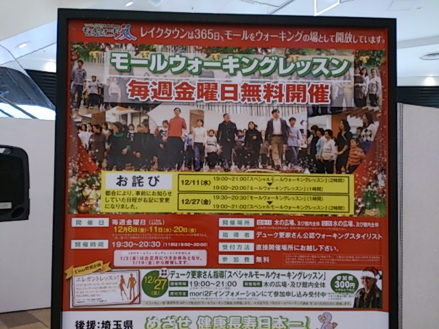 デュークズウォーク, フィットネス モールウォーキング 2013年12月7日 鈴木 光代 今日は越谷レイクタウンでのデュークズウォーク『モールウォーキング』の発アシスタント リーダーは旭一人先生といち子先生